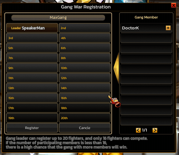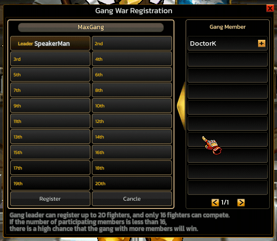 The Gang War Registration System is a team-based competitive system (Gang PvP) in Zone4, designed for players to form Gangs and participate in Team Tournaments.